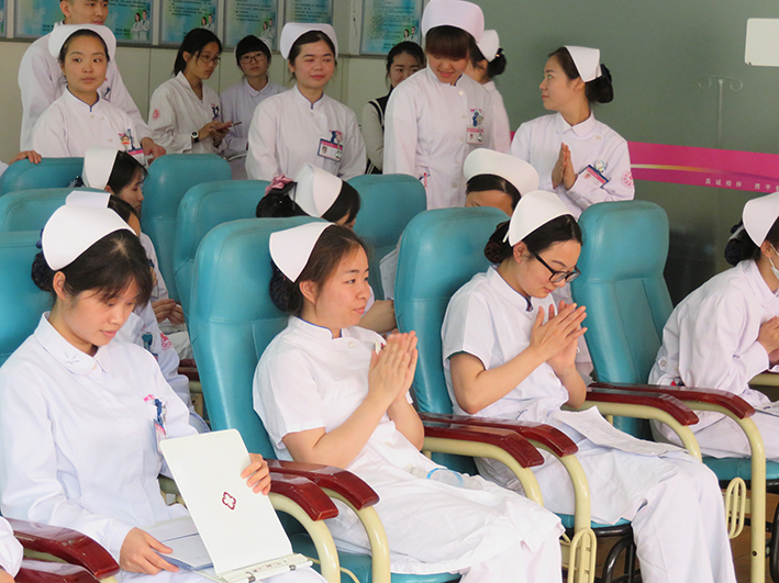 本次比赛呈现了两个亮点:一是参赛选手整体水平较高,尤其在较难一次成功的排气环节中,选手们动作娴熟,轻巧迅速,不留一个小气泡,穿刺一针见血等反映了选手扎实的基本功,赛出了水平。二是体现了我院较好的人文关怀和以病人为中心的护理理念,比赛中选手们姿态落落大方、表情自然、宣教到位等,展现了护士良好的礼仪和人文素养。